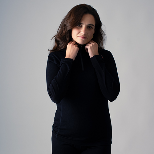 T-shirt manches longues col montant zippé en laine mérinos et fibre Silverprotect: Noir M